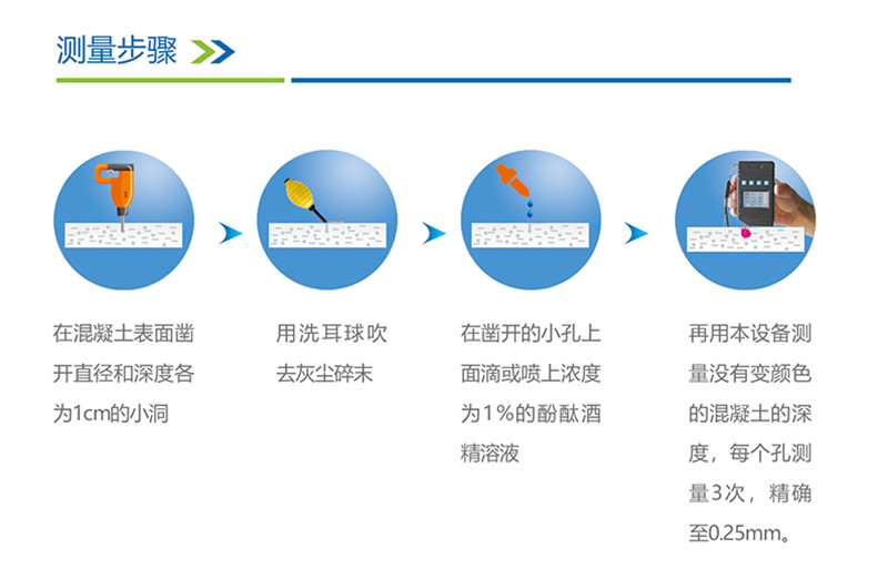 混凝土浇筑成型后,其中的Ca(OH)2与空气中的CO2或水分中溶的CO2反应生成CaCO3而失去碱性的过程。亚新(中国)原理是通过酚酞溶液遇碱变红色的特性,亚新(中国)碳